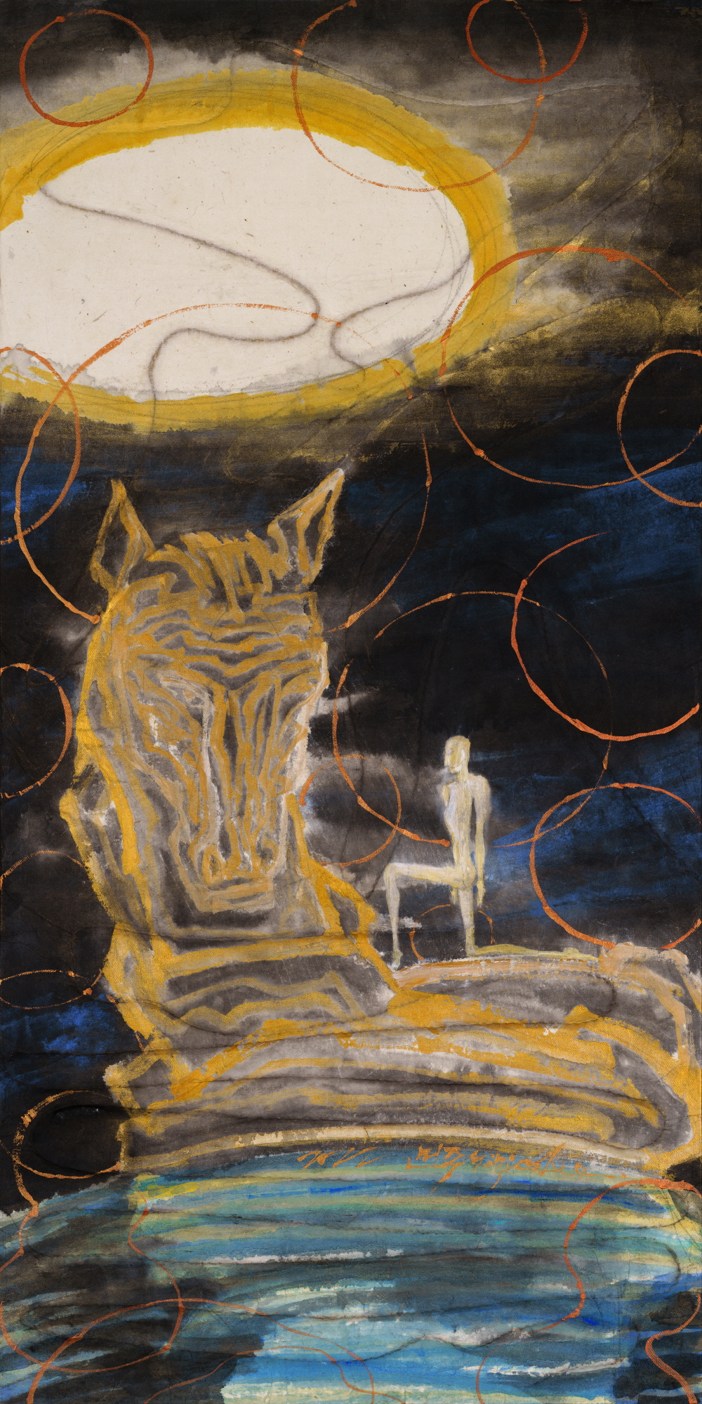 물적인 대소(大小)가 정신적인 대소로, 대결에서 자연의 순응으로: 어머니의 죽음은 특히 딸에게는 존재의 근거요, 영원한 힘의 근거의 상실이므로, 보편적, 자연적으로 되기에는 더 많은 시간이 필요하다. 3년 상()이 그 이유일 것이다. 따라서 어머니의 존재는 더 크게 부각된다. 어머니의 크기는 커지고, 말의 크기는 작아졌다. 말은 오히려 정면(正面)과 측면의 두상(頭像)온 정신을 통일하여, 적을 엄하게 경계하듯하는 자세와 눈의 응시로 세상과 대결하다가, 대결에서 해방되어 다양한 모습으로 나타나지만 여전히 엄중한 모습이다. 말은 고개를 숙이고 생각에 잠기거나, 화면의 여기저기에 나타나고, 금빛 연운 속이나 빛속에 나타나는가 하면, 불물에 비치는 상을 통해 자신을 관조하기도 함으로써 점점 그 존재의 폭이 넓어지고, 투명한 물속에 비친 상(), 말 주위의 수많은 검은 원형이나 계속된 동그라미의 등장에서 보듯이, 자신의 내세에 대한 빛과 어둠, 평안과 불안을 드러낸다. 이들 말의 모습은 바로 작가로, 작가는 수많은 수묵 선, 주름으로 어머니의 삶과 고통을, 혹은 미래를 내관(內觀)하면서 어머니를 지키면서, 현세와 내세를 오르내린다.
