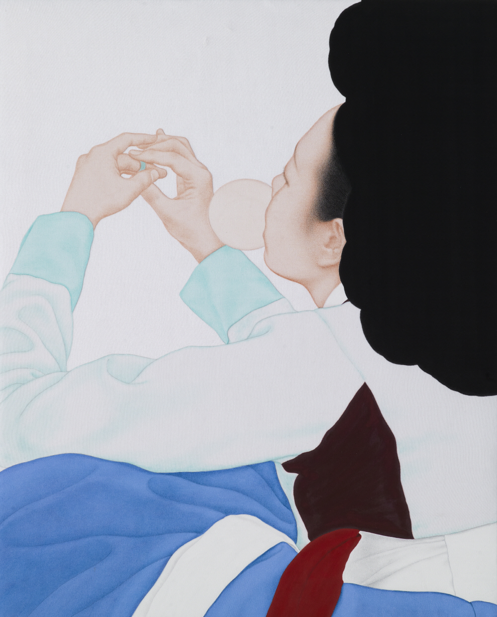 나에게 작업이란 숙명적으로 과거를 향하는 삶의 현재에 대한 기억을 축적하는 과정에 다름 아니다. 매일의 무수한 붓질들이 쌓여진 비단은 마치 레이어처럼 중첩되어지며 이미지의 확장을 모색한다. 작가에게 작업의 주제인 인체, 곧 인간은 삶의 유한성에 反하는 유의미한 흔적을 고민케 하는 영감이자 은유의 대상이다.