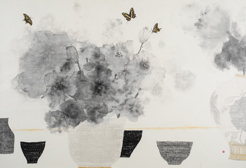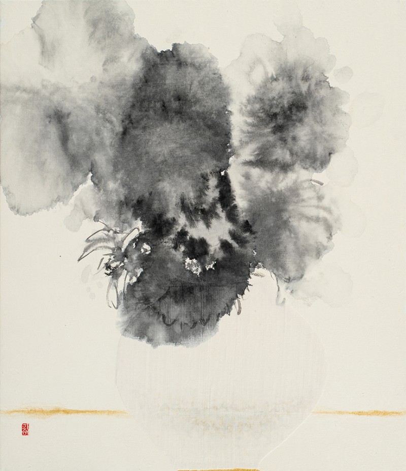 작품 작업 과정 면에서는, 캔버스 혹은 화판 위에 도자기 화병과 화분들을 질감이 거친 천으로 형태를 만들어 한지로 배접을 한 후, 수묵만으로 꽃을 표현하였다. 색채에서 오는 조화는 사용하지 않고 오로지 수묵이 갖고 있는 특성으로만 표현하였다. 수묵의 분방한 발묵(潑墨)을 통해서 한층 깊이 있는 연운(煙雲)을 지니게 하였고, 이러한 발묵의 표현과 더불어 여백을 적극적인 조형 요소로 수용하여 화면에 더욱 밀도를 가하는 표현을 매우 중요하게 구사하였다. 보다 농밀한 조형적 구조를 확보하기 위해 오채(五彩)를 내포한 먹의 사용을 가장 높은 비중을 두고 한 작업으로 자연물‘꽃’의 표현 작품 세계이다.