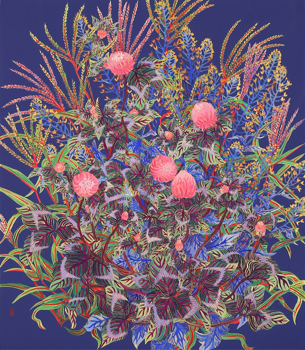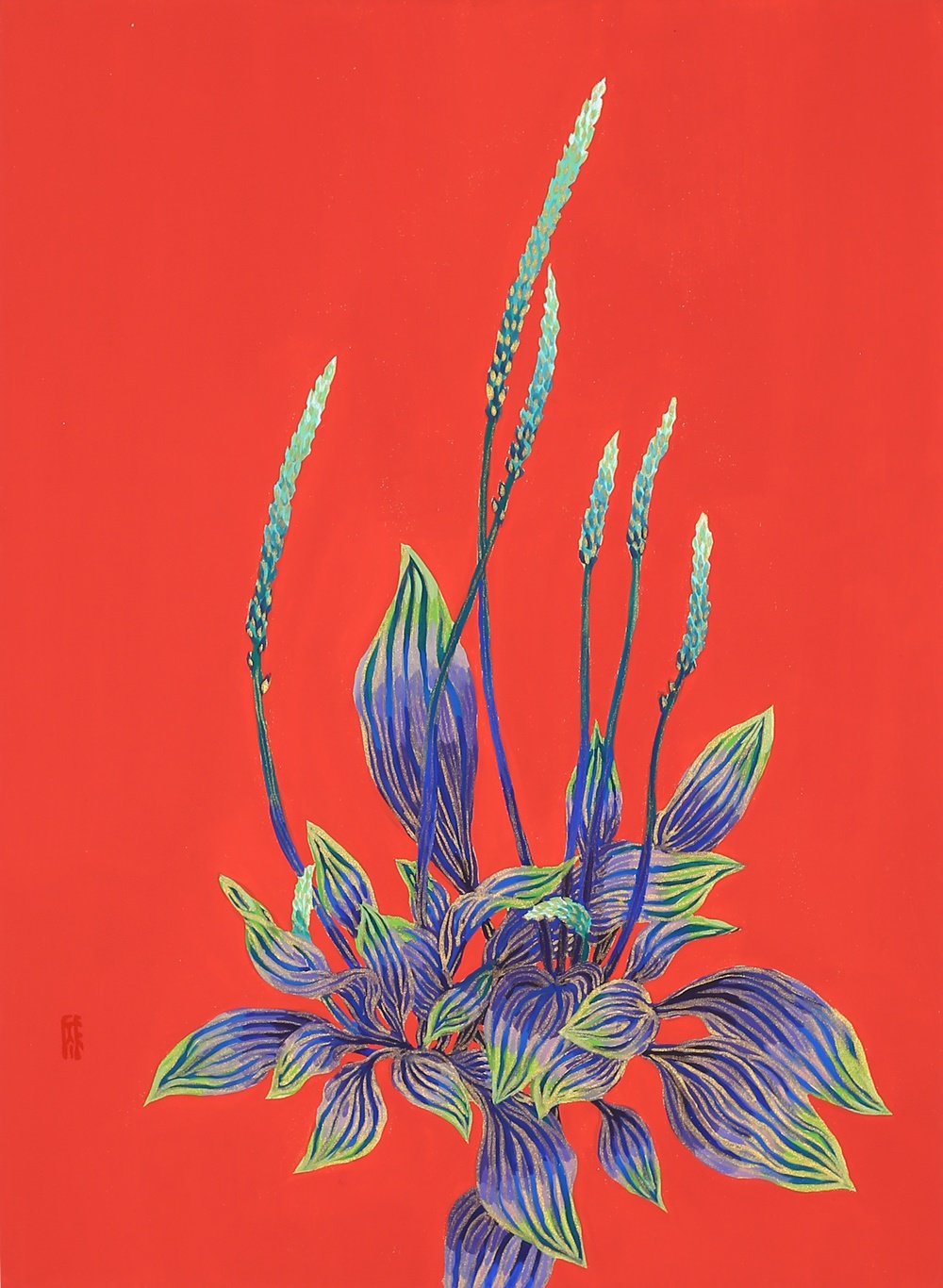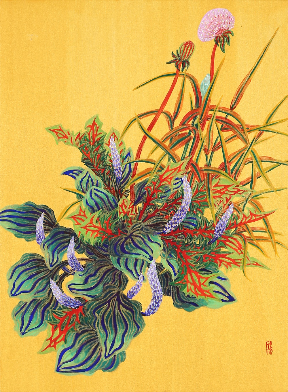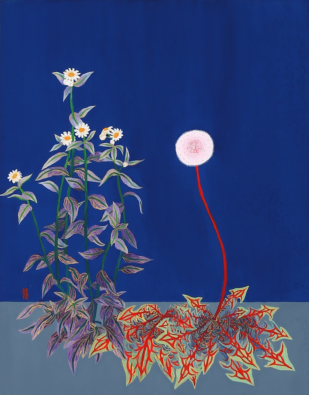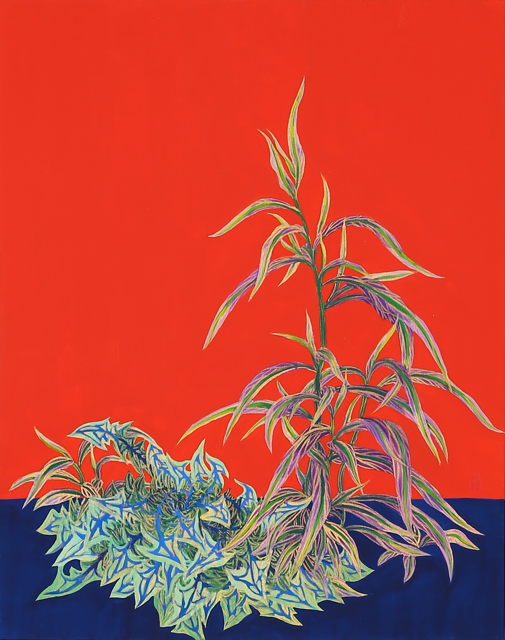 길가 아스팔트를 뚫고 연석 사이를 비집고 나와 존재를 드러내는 풀, 소위 잡초라 불리는 이 풀들은 일상에서는 우리의 이목을 끌지 못한다. 간혹 민들레가 홀씨를 머금을 때 궁금증이 잠시 스칠까? 이 내세울 만한 꽃도 향기도 없는 이 풀들은 아무도 보아주지 않고 누구도 자리를 만들어주지 않지만, 어둠 속에서 움터 싹으로 줄기로 잎으로 자라난다. 그저 자신에게 간간히 주어지는 빗방울과 흙의 온기만으로 말이다. 그리곤 일 년도 채 나지 못하고 사그라진다. 돕는 이 없어도 스스로 생명을 움트는 풀의 자생력. 그러한 풀의 생태를 성민우는 화폭에 담는다.