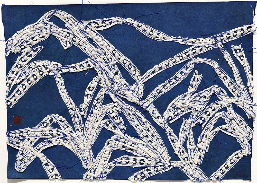 그것을 벽에 약간의 공간을 띄워 건다. 여기에 빛을 쏘아주면 그림 아래 그림자가 드리워지면서 또 하나의 끈의 얽힘이 나타난다. 흰 벽에 여백이 잘린 산과 바위의 부정형 덩어리가 걸린다. 그러면 그 흰 벽은 작품이 걸리는 배경이 아닌 끝없는 하늘이 되고 망망한 바다가 된다. 여백이 벽 위로 끝도 없이 확장된다.