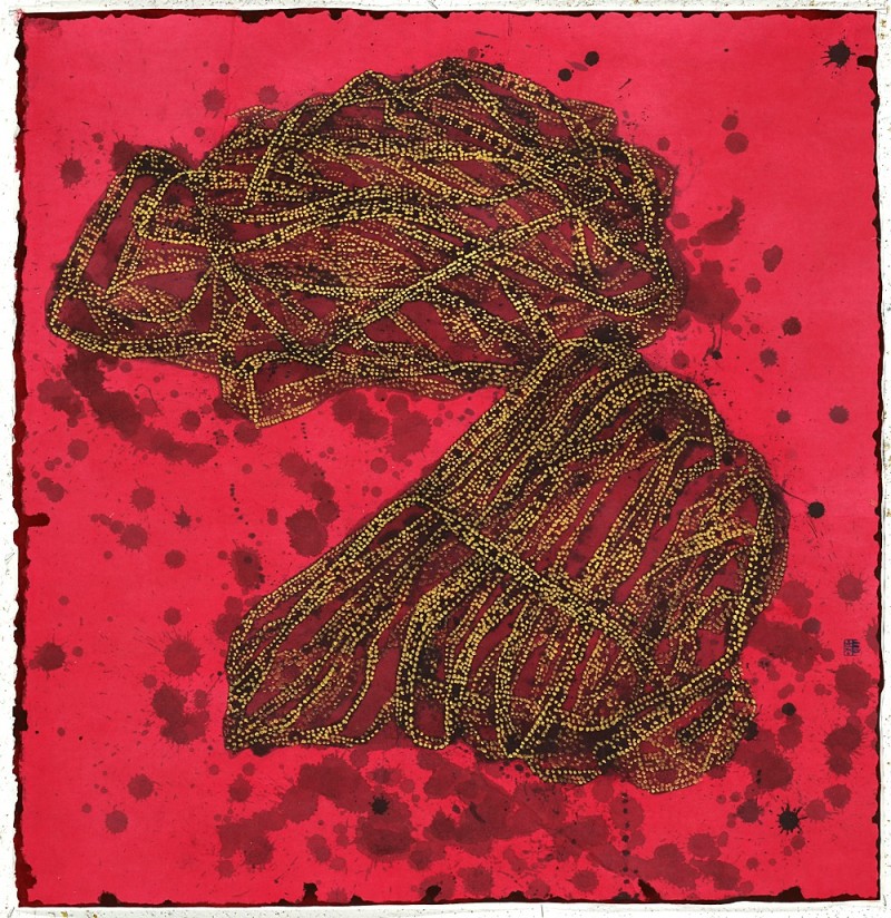 ‘한지에 수묵 채색’ 어떤 이는 그 부정형의 작품을 보고 수묵채색화가 아니라고 말한다. 수묵채색화여도 좋고 수묵채색화가 아니라도 좋다. 동양화의 번짐과 여운이 없고 디자인 도안 같다고 하는 이도 있다. 동양화여도 좋고 동양화가 아니어도 좋다. 그것은 산수로 보일 때도 있고 끈이 얽혀 있는 추상적 형태로 보일 때도 있다. 산수여도 좋고 추상이어도 좋다. 뭐라 이름 붙이지 않아도 좋다.