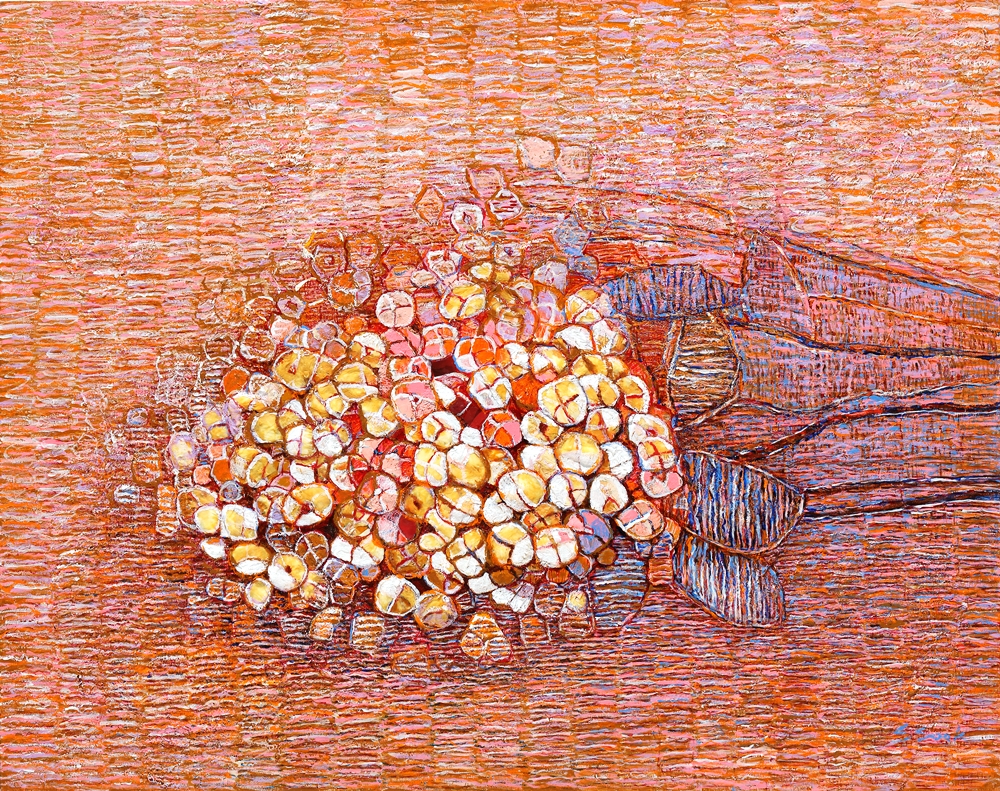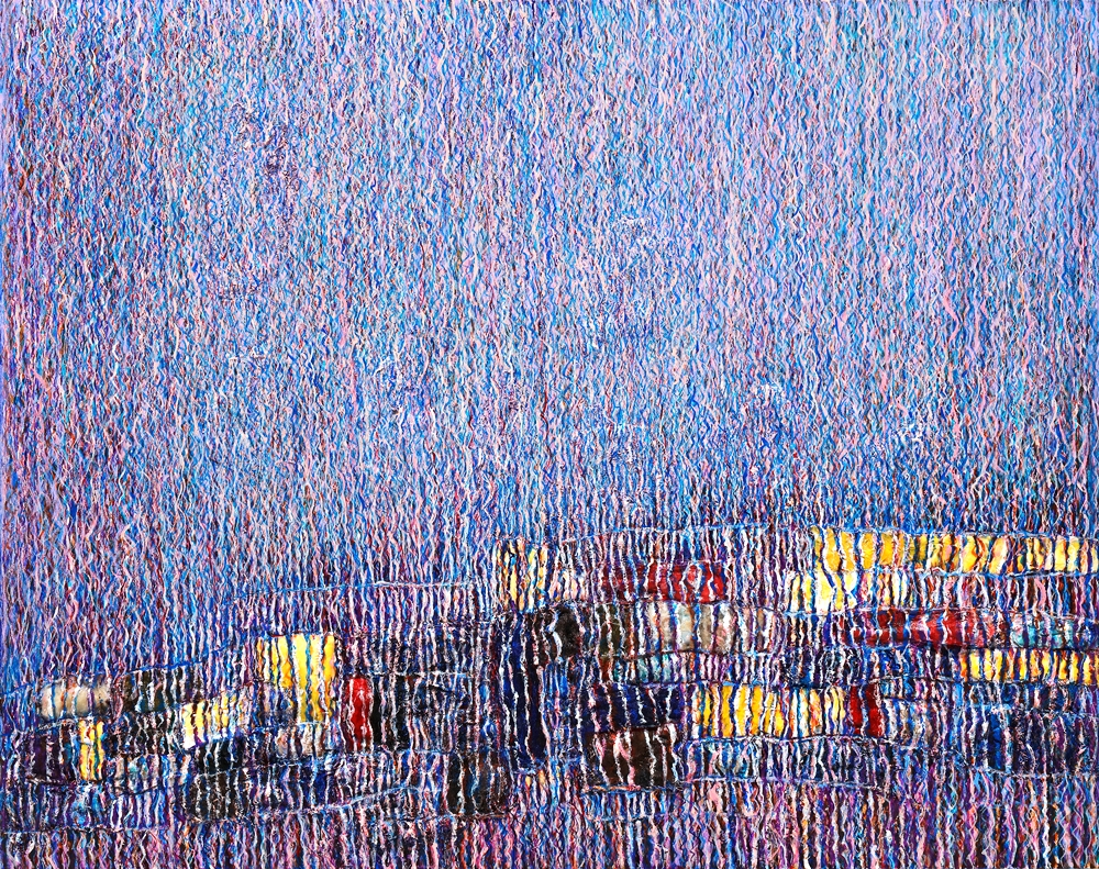 To the artist, Chae Soung-Sook, who prioritizes the achievement of the overall atmosphere rather than depicting details on the canvas surface, color plays an important role in rendering her mood and sensibility, but the element that she truly  want to depict seems to be the fragmentation of light over colored surface. There is this sense of besiegement of the iridescent light over the painted canvas, creating a mysteriously soft and intimate atmosphere which is the effect of texture created by wool threads.