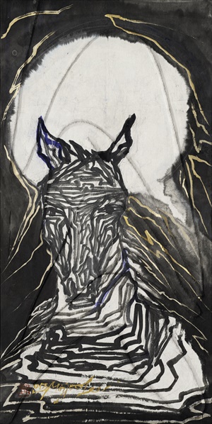 이러한 파장의 공간은 현대인이 가진 무의식적 소외의 공간을 생생한 의식의 거주 공간으로 바꾸어, 새로운 의미를 발산하는 탈영토화의 공간으로 변모시킨다. 이와 같은 창조적 연금술 속에서 인간의 시선은 소외를 벗어나 신화의 공간으로 들어서고, 화가의 붓질은 공명의 촉매로서 가능성의 땅을 향해 달리는 고삐 풀린 말의 갈기처럼 마구마구 탈주하는 살아있는 선을 낳는다. 그럼으로써 그녀의 작품은 단순히 표현하는 것을 넘어서, 보이지 않는 것을 드러내어 활성화하고 진동하게 한다. 이러한 드러냄은 신화를 위한 심층적인 시선의 초대이다.