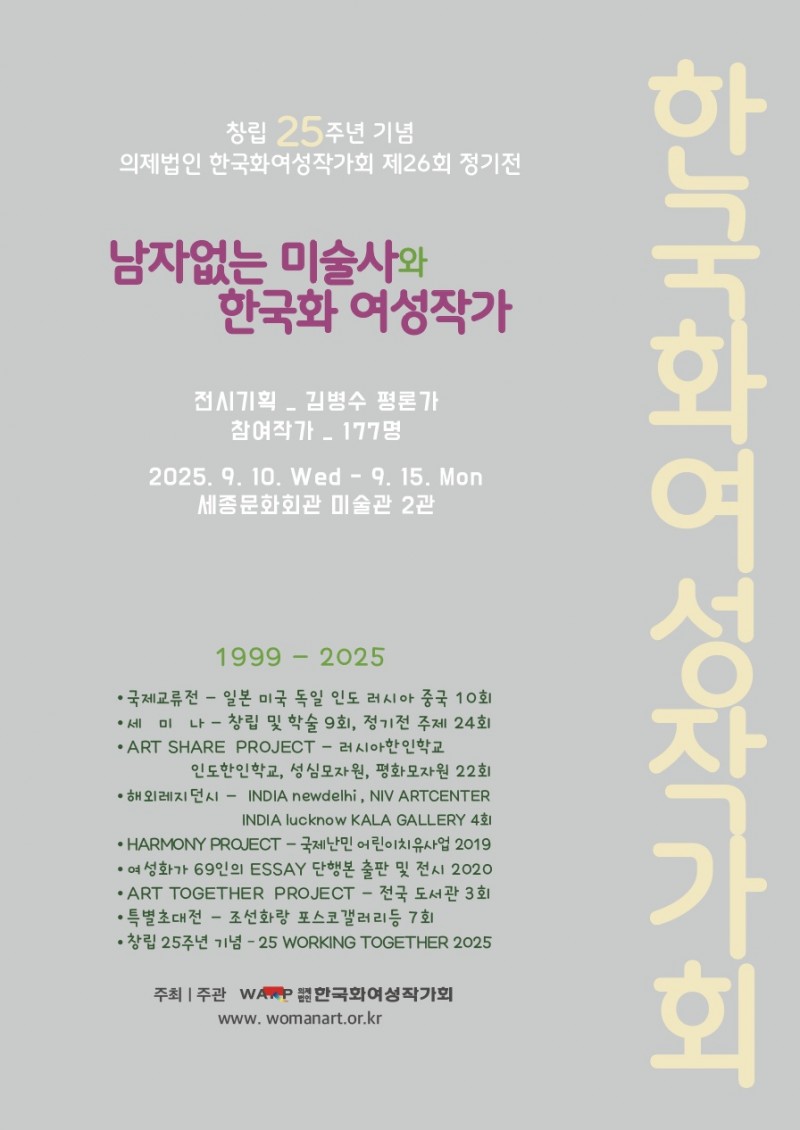 [남자없는 미술사 와 한국화 여성작가 ] 제26회 정기전 개막식 페이지 정보 작성자 우먼아트 작성일25-10-13 13:40 조회184회 댓글0건 관련링크 이전글 다음글 목록 본문 [남자없는 미술사 와 한국화 여성작가] 창립25주년 기념 제26회 정기전 개막식세종문화회관 미술관2관 댓글목록 등록된 댓글이 없습니다. 이전글 다음글 목록